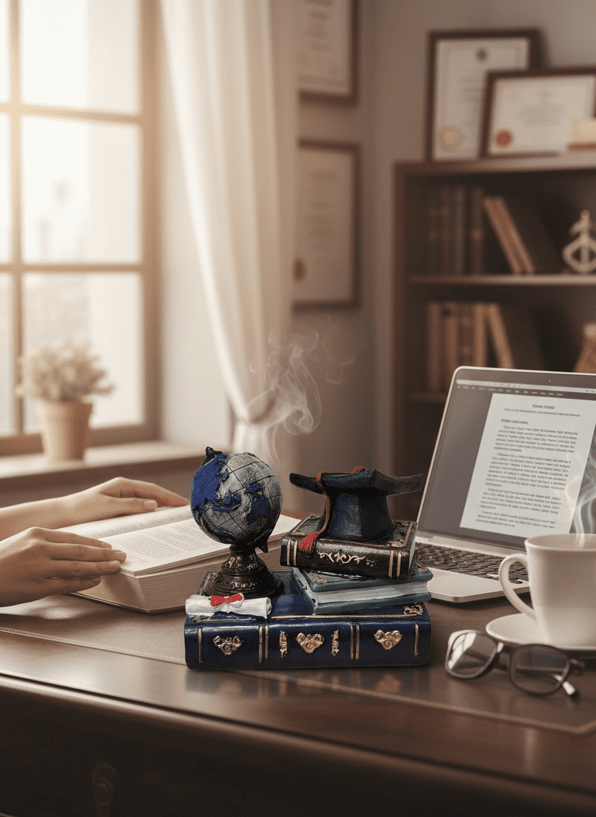 Dekor Diplomimi me Libër & Glob – Dhuratë për Studentë & Mësues