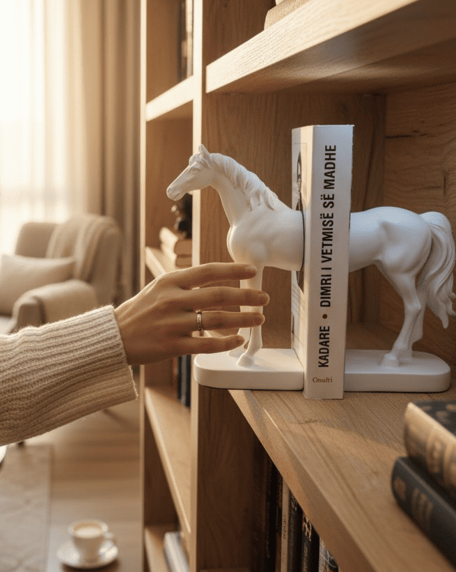 Mbajtëse Librash me Kalë – Dekor Elegant për Librari & Shtëpi
